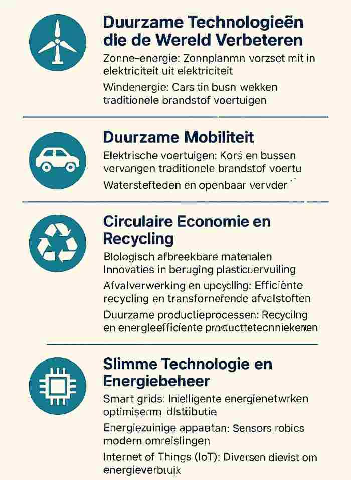| Thema | Technologie | Belangrijk Kenmerk | Impact op Duurzaamheid |